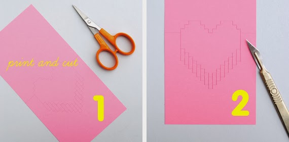 Have you ever seen an origami standing heart? This pixelated pop-up heart card is ideal for
